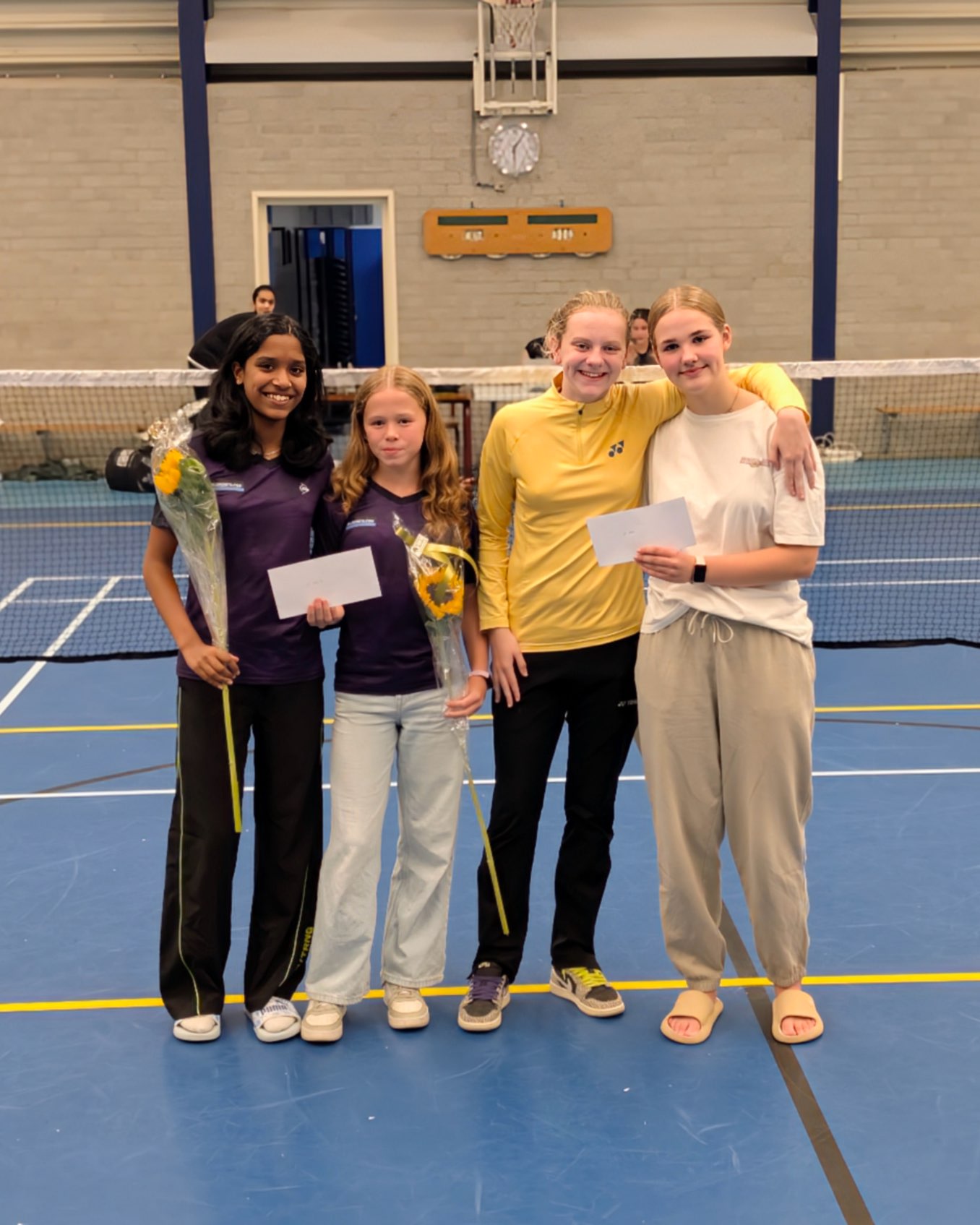 En toen de grote finale van de damesdubbel! We mochten het opnemen tegen Femke Boelens en Byrthe Theunissen. Het was een leuke wedstrijd.