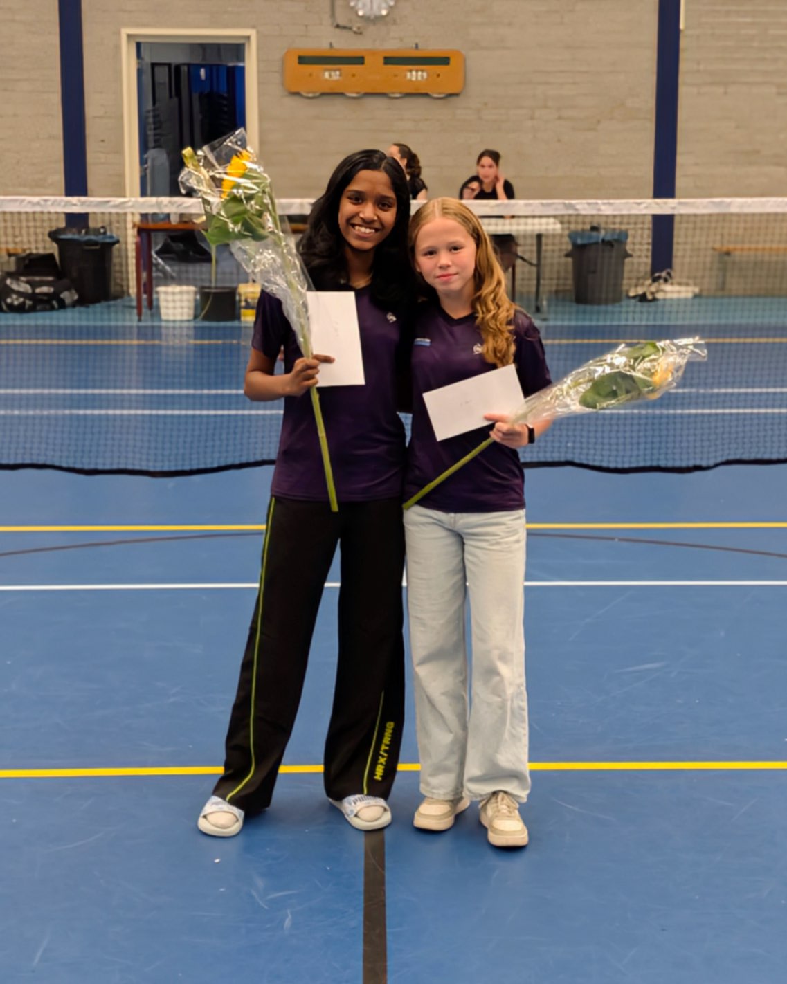 Tussendoor kwam er nog een hele belangrijke dubbel: tegen Dhwani en Aminah! π€― Dit was al de 11e keer dat we tegen ze speelden!