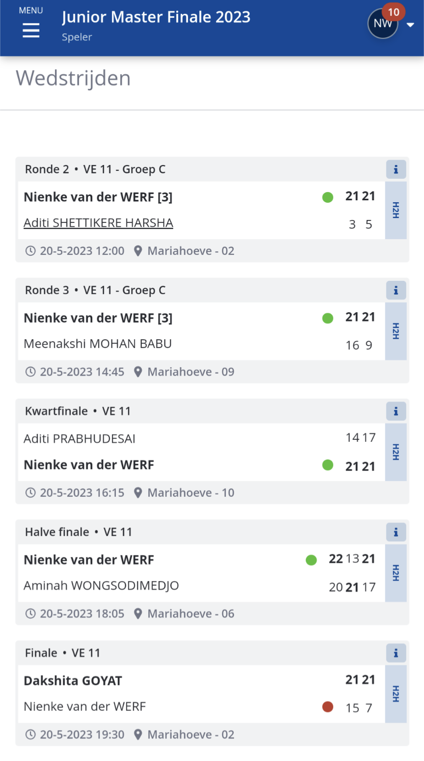 In de poule werd ik eerste en daarna heb ik ook de kwartfinale en de halve finale gewonnen!